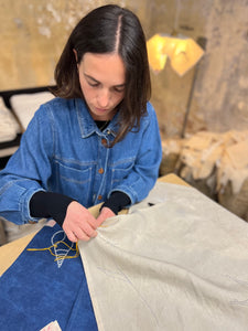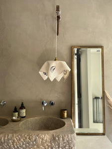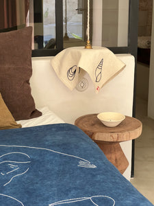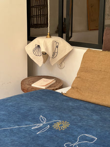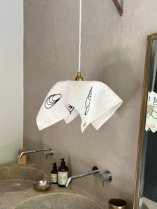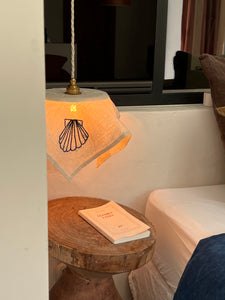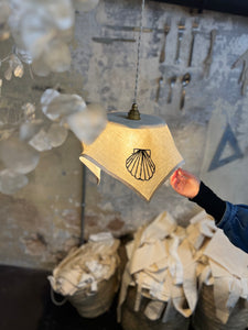 Le modèle « Retour de pêche » est illustré de coquillages et autres merveilles de la Méditerranée. Disponible en lin naturel ou indigo, cette suspension nous transporte dans les calanques- au cabanon - après un après-midi entre soleil et mer. À la fois objet d’usage et oeuvre d’art lumineuse, elle peut s’installer au dessus d’une table de campagne, dans une cuisine ou en liseuse.