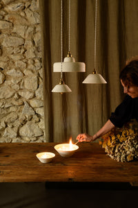 LISETTE - Grès chamotté ivoire - Suspension en applique - Potence laiton vieilli