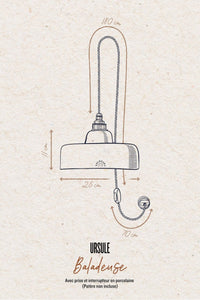 URSULE - Grès chamotté ivoire - Suspension en applique - Potence laiton vieilli