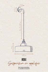 URSULE - Grès chamotté ivoire - Suspension en applique - Potence noire