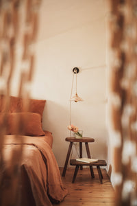 Cette variante "baladeuse" peut être utilisée en tant que liseuse sans aucun montage électrique. Elle est fournie avec une douille en laiton massif, un fil de lin tissé (2,5 mètres), un interrupteur et une prise.