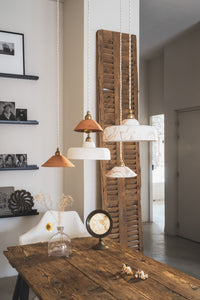 Tournée patiemment par des mains expertes dans une poterie au savoir faire ancestral, Pitchoun est déposée "à la sèche" sous le soleil du sud, puis "tournassée" avant d'être cuite au four. Le grain de sa peau de terre garde la trace du geste et sa forme est intemporelle. Une suspension qui diffuse une lumière douce, délicate, en apesanteur. En liseuses de chaque coté du lit, dans une salle de bain, elle peut aussi s'associer aux Ursule et aux Lisette, en terre cuite ou en terre mêlée pour créer une grappe lumineuse singulière. Elle s'insère aussi bien dans un décor brut que plus sophistiqué, dans lequel elle apportera incontestablement une langueur toute méditerranéenne.