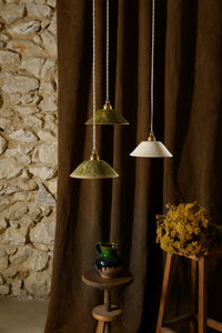 Cette superbe constellation aux tons verveine & grès chamotté, composée de 3 Lisette, s'intégrera parfaitement au-dessus de votre table de salle à manger.