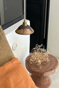 Cette suspension en applique peut être utilisée en tant que liseuse . Elle est fournie avec une puissance en laiton vieilli, un fil de lin tissé de 60cm, les vis et chevilles.