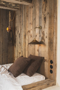 Tressée à la main à quelques encablures de Porquerolles, la LISETTE tressée est inspirée des vanneries traditionnelles de Provence. L'osier - de teinte foncé - a trempé 10 jours avant de pouvoir être travaillé brin par brin.