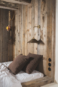 Cette suspension en applique peut être utilisée en tant que liseuse . Elle est fournie avec une potence en laiton vieilli, un fil de lin tissé de 60cm, les vis et chevilles.