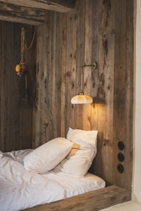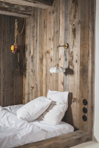 Cette suspension en applique peut être utilisée en tant que liseuse . Elle est fournie avec une potence en laiton vieilli, un fil de lin tissé de 60cm, les vis et chevilles.
