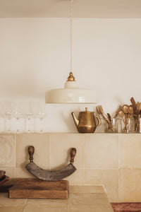 URSULE - Grès chamotté ivoire - Suspension en applique - Potence laiton vieilli