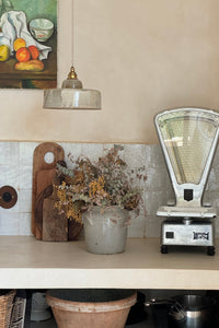 Tournée à la main par une artisane passionnée, la URSULE Vert de gris sèche patiemment sous les oliviers avant de passer au four. Elle est ensuite émaillée puis remise au four pour prendre sa teinte vert de gris et son aspect brillant définitif. Cette suspension en applique peut être utilisée en tant que liseuse.