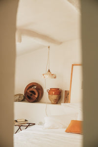URSULE - Terre mêlée mat - Suspension en applique - Potence laiton vieilli
