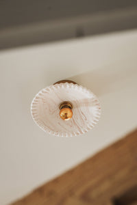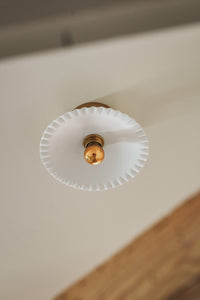 Ses inspirations sont doubles : variation de notre Yvonne sur un thème dentelé, cette création particulière est aussi une interprétation soignée des traditionnels luminaires « Monte et Baisse » autrefois réalisés en verre et opaline. Très féminine, elle apporte également un petit côté retro à notre collection.