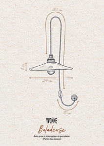Cette suspension en applique peut être utilisée en tant que liseuse. Elle est fournie avec une potence en laiton vieilli, un fil de lin tissé de 60cm, les vis et les chevilles.
