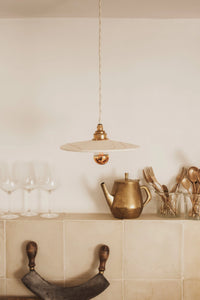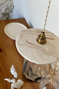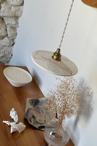 De forme plus plate, la Yvonne évoque les joyeux et larges parasols qui couvrent les tables de nos déjeuners d’étés. Sa galette, typiquement provençale, est façonnée à la plaque dans une terre mêlée, ou bien patiemment tressée à l’aide de brins d’osiers dans sa version plus rustique.