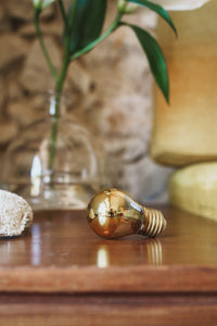 Dotée d’une calotte dorée, cette ampoule sphérique s’adapte parfaitement à notre collection de suspensions. Elle diffuse une lumière chaude et douce pour des ambiances chaleureuses et conviviales.