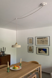 Ce kit de décentralisation à fixer au plafond est utilisé pour déporter votre suspension de sa rosace en porcelaine. Il suffit de faire glisser le cordon de lin de votre suspension à travers ce crochet et de faire retomber votre luminaire où vous le souhaitez dans la pièce.