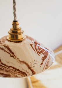 Interprétation contemporaine en terre mêlée des suspensions émaillées de nos grand-mères, l'iconique Lisette se pare ici de discrètes marbrures "grenat". Une couleur de terre plus foncée - davantage rouge lie de vin - que les marbrures terracotta de la collection permanente.