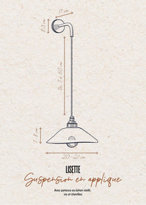 Ce modèle est disponible dans 6 systèmes électriques : suspension, baladeuse, applique murale, plafonnier, suspension en applique