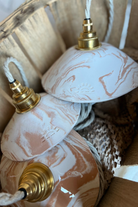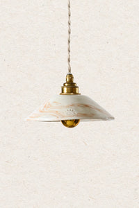 Interprétation contemporaine des suspensions émaillées de nos grand-mères, l'iconique Lisette se pare de discrètes marbrures terracotta. Savoir-faire séculaire de la région d'Apt - la terre mêlée est depuis des générations la technique de décoration des objets d'usage culinaires du Luberon.