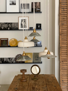 Uniques et singulières, ces suspensions en grès ont été façonnées et émaillées à la main par la potière Marion Graux. Délicieusement imparfaites, chaque pièce de la collection porte en elle cette sensualité et cette douceur réconfortante propres aux maisons de vacances de notre enfance. Disponibles en suspension ou en baladeuse, seule, en duo ou en grappe, elles apporteront une atmosphère chaleureuse et intimiste à votre intérieur. Cette série limitée comporte 58 pièces exclusives, chacune vous sera remise avec son certificat d’authenticité. Elle ne sera pas reproduite par la suite.