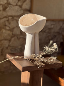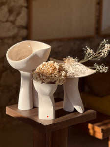 Avec curiosité et instinct, l’artiste explore librement la matière sans typologie ni échelle et crée des pièces uniques au vocabulaire sensuel et organique.