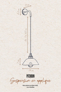 PITCHOUN - Terre cuite blanche émaillée - Suspension en applique - Avec potence laiton vieilli