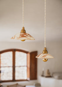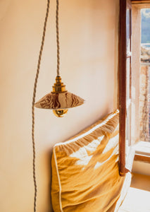 Interprétation contemporaine en terre mêlée des suspensions émaillées de nos grand-mères, la PITCHOUN est le modèle réduit de l'iconique Lisette. Elle se pare ici de discrètes marbrures "grenat". Une couleur de terre plus foncée - davantage rouge lie de vin.