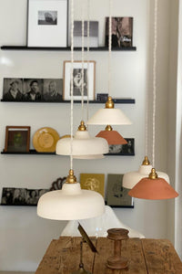 Tournée patiemment par des mains expertes dans une poterie au savoir faire ancestral, Ursule est déposée "à la sèche" sous le soleil d'Aubagne, puis "tournassée" avant d'être cuite au four. Le grain de sa peau de terre garde la trace du geste et ses formes sont pures et généreuses. Une suspension qui diffuse une lumière douce, délicate, en apesanteur. Au-dessus d'une table, dans une cuisine, elle peut aussi s'associer aux Lisette en terre mêlée pour créer une grappe lumineuse unique . Elle s'insère aussi bien dans un décor brut que plus sophistiqué, dans lequel elle apportera incontestablement une langueur toute méditerranéenne.
