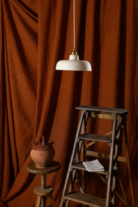 Cette suspension en applique peut être utilisée en tant que liseuse. Elle est fournie avec une potence en laiton vieilli, un fil de lin tissé en Italie de 60cm, les vis et les chevilles.