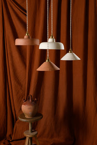 Cette variante "baladeuse" peut être utilisée en tant que liseuse sans aucun montage électrique. Elle est fournie avec une douille en laiton massif, un fil de lin tissé en Italie (2,5 mètres), un interrupteur et une prise.