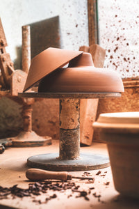 Tournée patiemment par des mains expertes dans une poterie au savoir faire ancestral, Ursule est déposée "à la sèche" sous le soleil d'Aubagne, puis "tournassée" avant d'être cuite au four. Le grain de sa peau de terre garde la trace du geste et ses formes sont pures et généreuses.