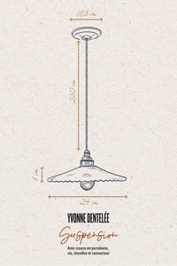 Ce délicat modèle YVONNE EN DENTELLE est une interprétation précieuse des traditionnels luminaires "Monte et Baisse" qui était à l'époque réalisés en verre et opaline.