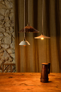 Fournie avec une douille en laiton massif, un fil de lin tissé (2,5m) et une rosace en porcelaine dans sa version "suspension", ce modèle est également disponible en "baladeuse" avec une prise et un interrupteur pour être utilisé en liseuse sans aucun montage électrique.
