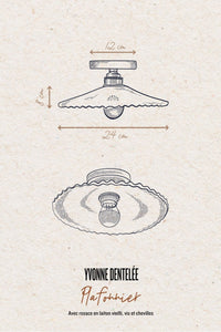 Ce délicat modèle Yvonne en dentelle est une interprétation précieuse des traditionnels luminaires "Monte et Baisse" qui était à l'époque réalisés en verre et opaline.