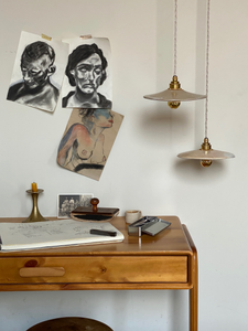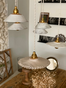 Uniques et singulières, ces suspensions en grès ont été façonnées et émaillées à la main par la potière Marion Graux. Délicieusement imparfaites, chaque pièce de la collection porte en elle cette sensualité et cette douceur réconfortante propres aux maisons de vacances de notre enfance. Disponibles en suspension ou en baladeuse, seule, en duo ou en grappe, elles apporteront une atmosphère chaleureuse et intimiste à votre intérieur. Cette série limitée comporte 58 pièces exclusives, chacune vous sera remise avec son certificat d’authenticité. Elle ne sera pas reproduite par la suite.
